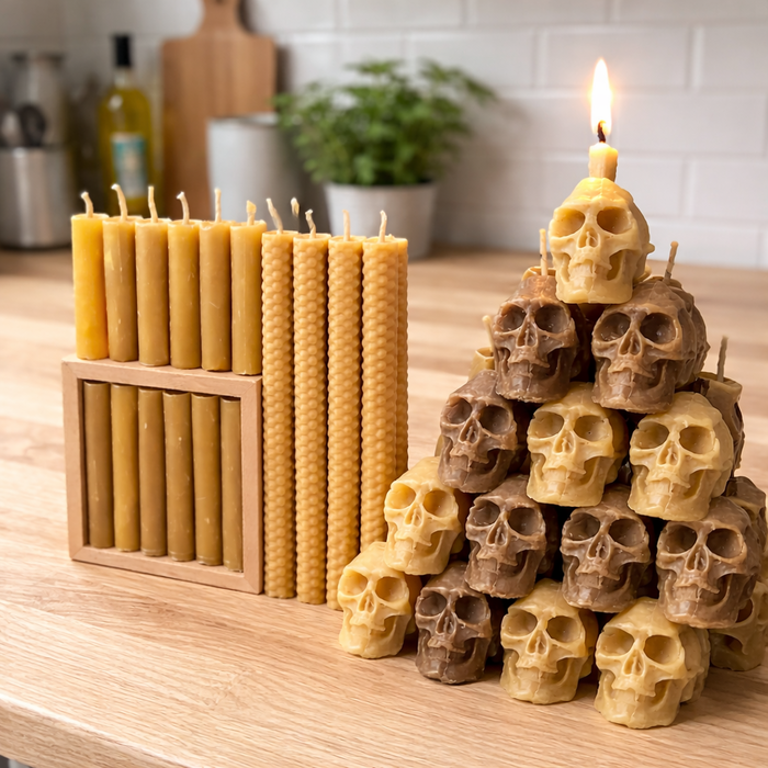 Velas ritualísticas personalizadas, confeccionadas em cera de abelha pura, preparadas para trabalhos simbólicos, rituais direcionados e práticas cerimoniais conscientes.